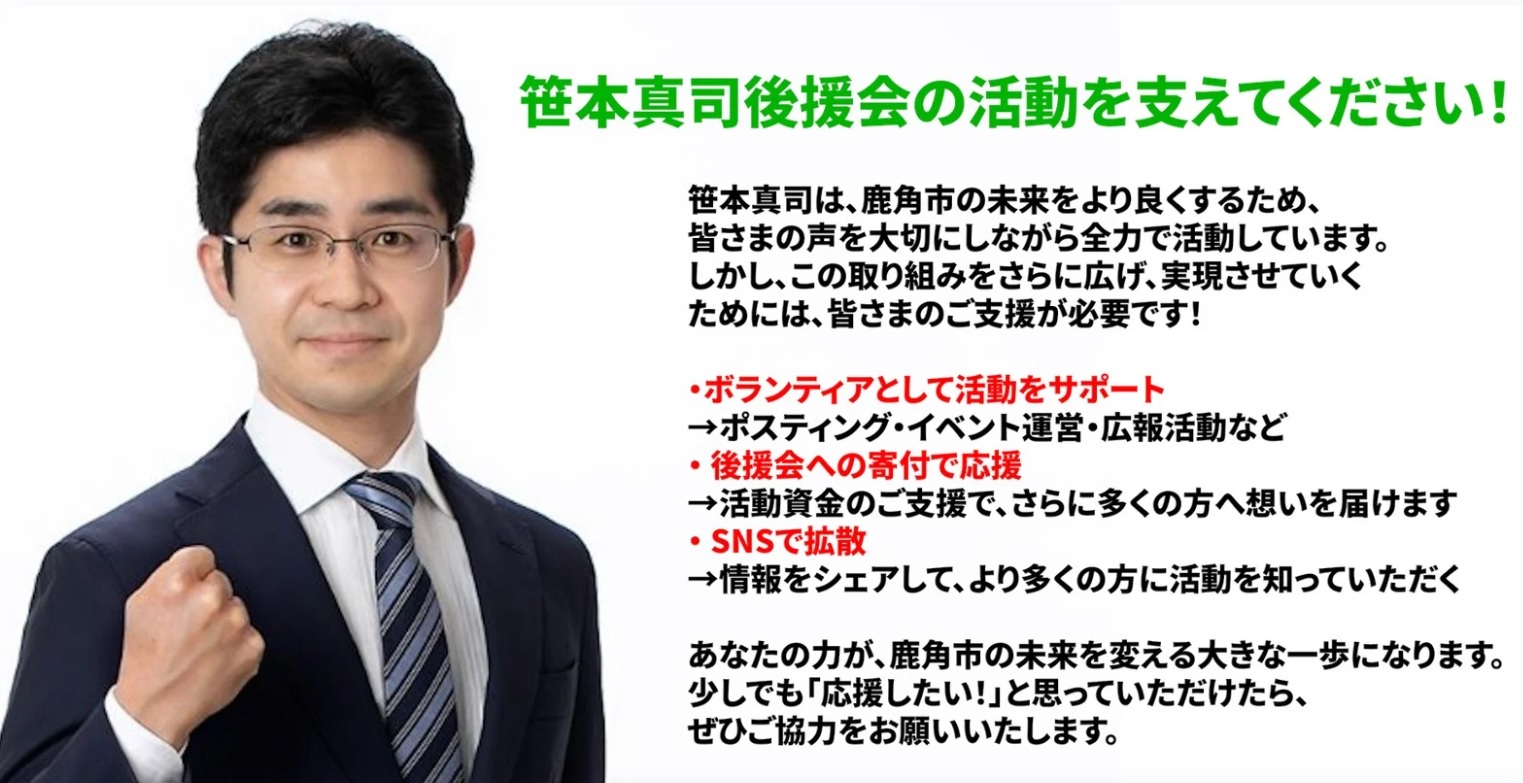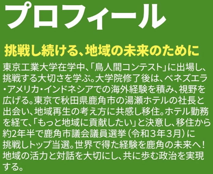 プロフィールを見る → 活動報告 日々の活動や想いを発信しています。 ぜひご覧ください。 しがらみがないからこそ! しがらみがないからこそ! 世界中をわたり歩いたからこそ!鹿角市議会議員を経験したからこそ!描ける鹿角のあるべき未来とその道筋! 世界中をわたり歩いたからこそ!鹿角市議会議員を経験したからこそ!描ける鹿角のあるべき未来とその道筋! 政策・理念を見る → SNS発信 写真・動画をメインに笹本真司の視点に触れる Instagramを見る → 具体的な意見や考察を通して笹本真司を深く知る はてなブログを見る → 私たちも笹本真司を応援します。 名 前 テキストテキストテキストテキストテキストテキストテキストテキストテキストテキストテキストテキストテキストテキストテキスト